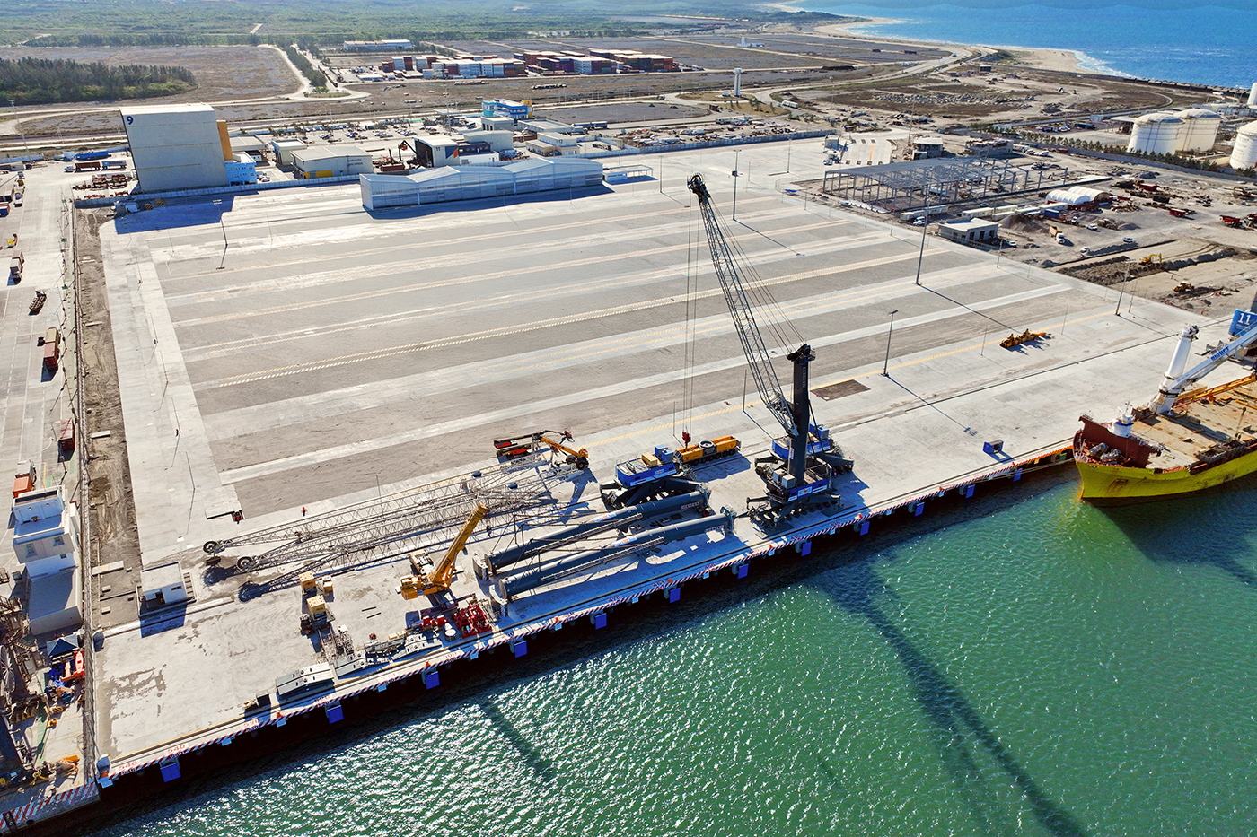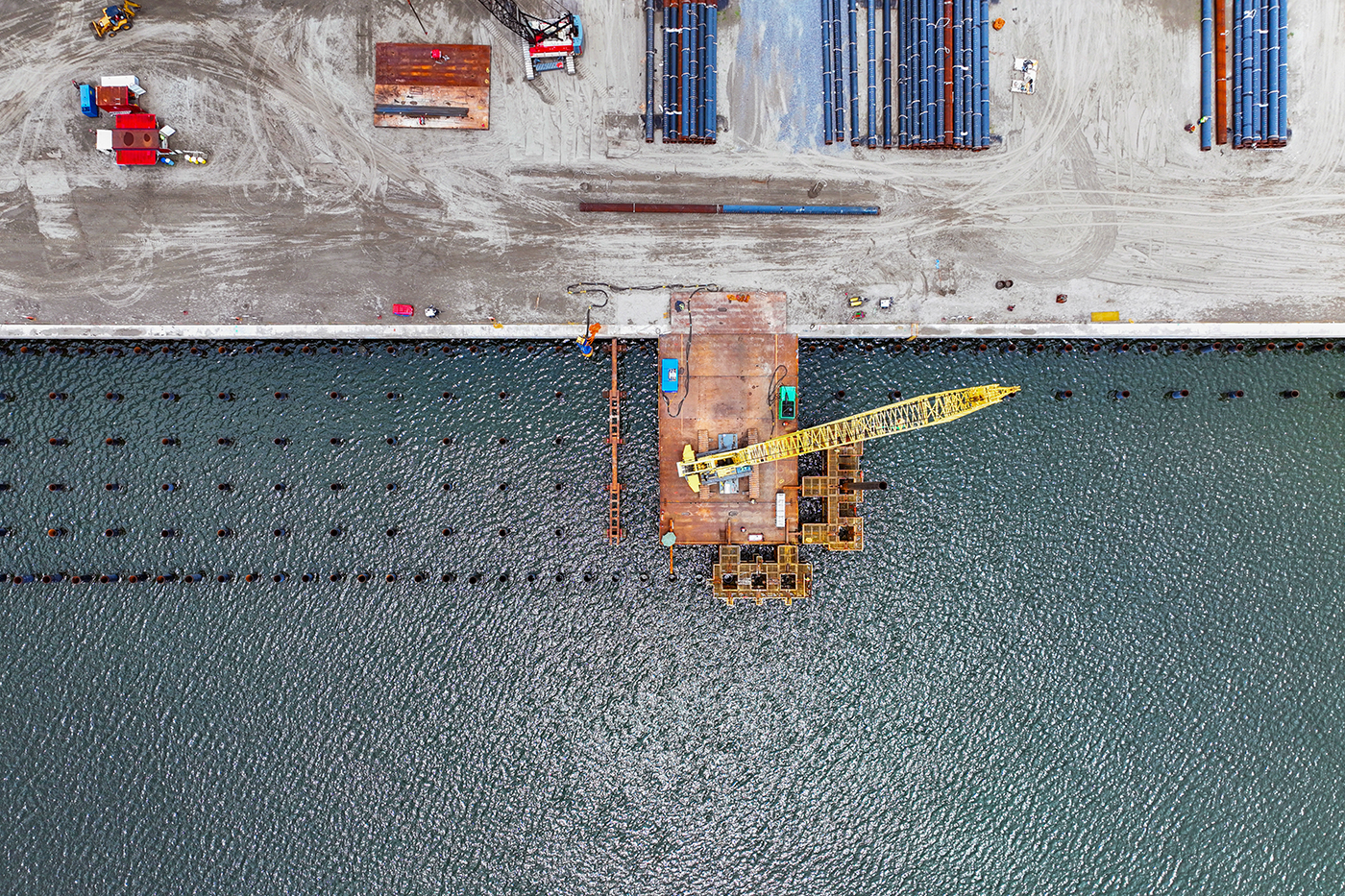 La ingeniería portuaria se convirtió en una coreografía aérea sobre el mar.