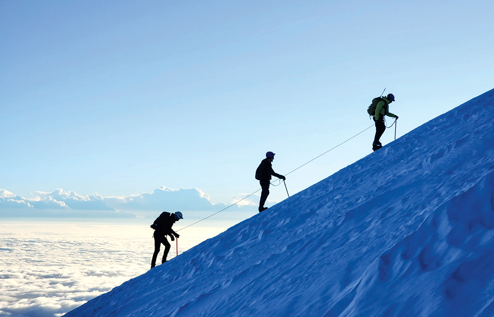 alpinistas cruzar las laderas de la montaña. Donde hoy se entierra su piolet, hubo hasta hace unas décadas
